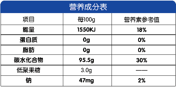 | 净含量: 60克(2g×30) 科学搭配药食同源营养组合 Eat sweet scientific combination homology of medicine and food 营养表